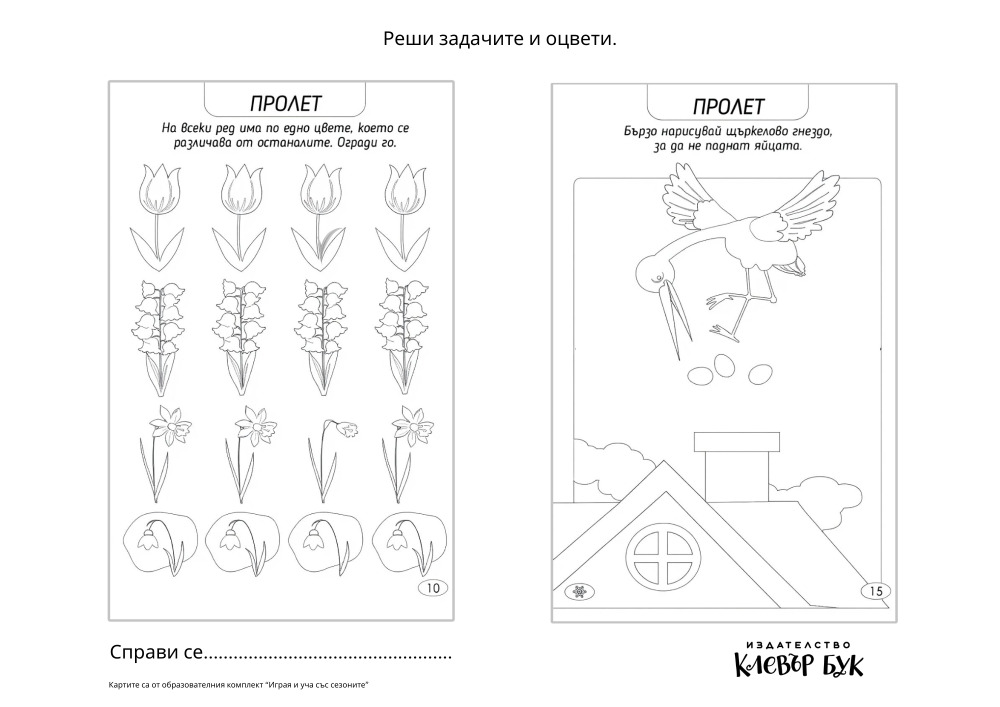 С този безплатен принтъбъл децата решават логически задачи, проследяват пътища, търсят разлики и оцветяват, докато учат за сезоните и природата около нас.