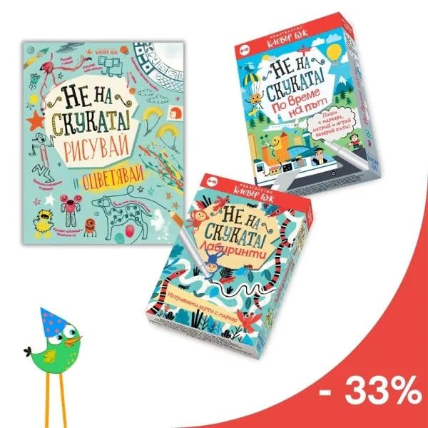 Кажете "НЕ" на скуката с нашата специална оферта! Включва два комплекта активни карти и една забавна книга.