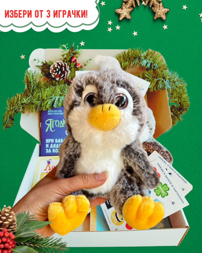 Коледна кутия №1 за най-малките е създадена с грижа към нуждите на децата от 1 до 4 години – с познати герои, разбираеми послания и топла, гушлива играчка.
