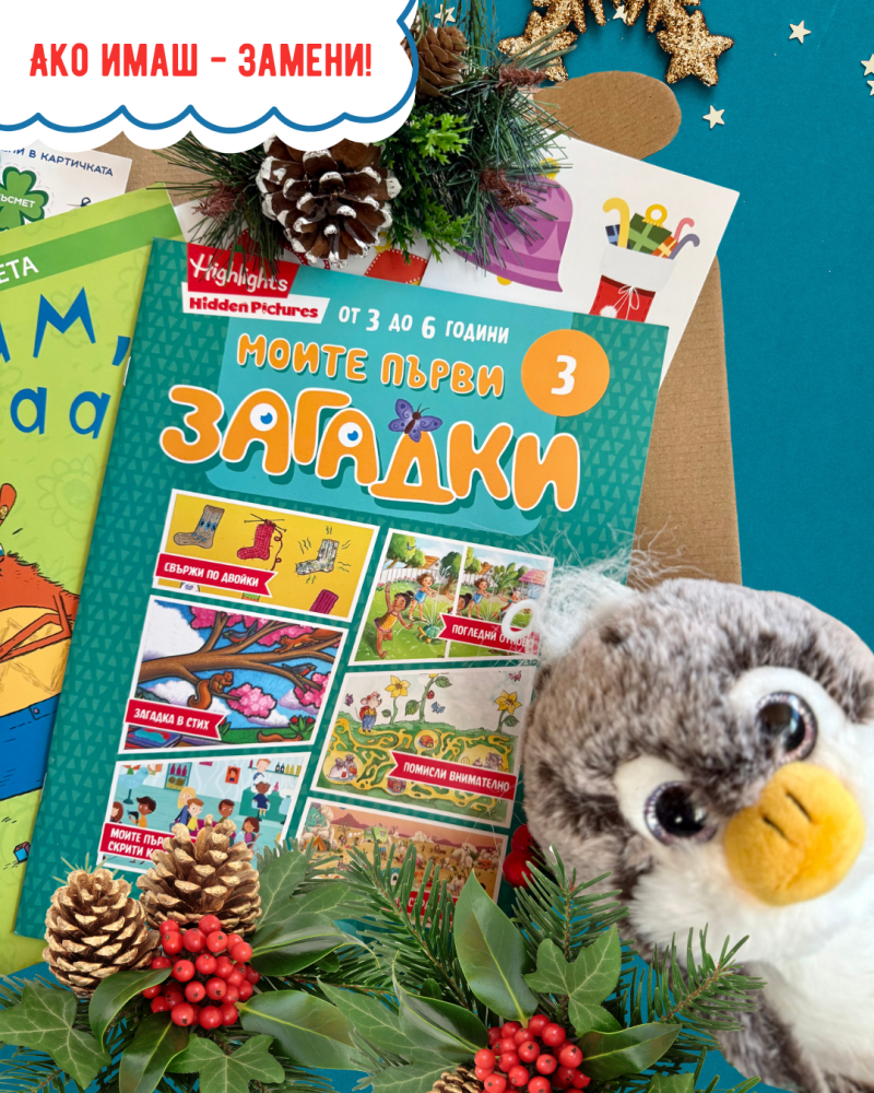 Подарък с много стойност и забавление – Коледна кутия №3 съчетава изтриваеми карти, загадки, книжка за четене, игра и мека играчка. Идеална за деца в периода на интензивно учене и растеж (4–7 години).