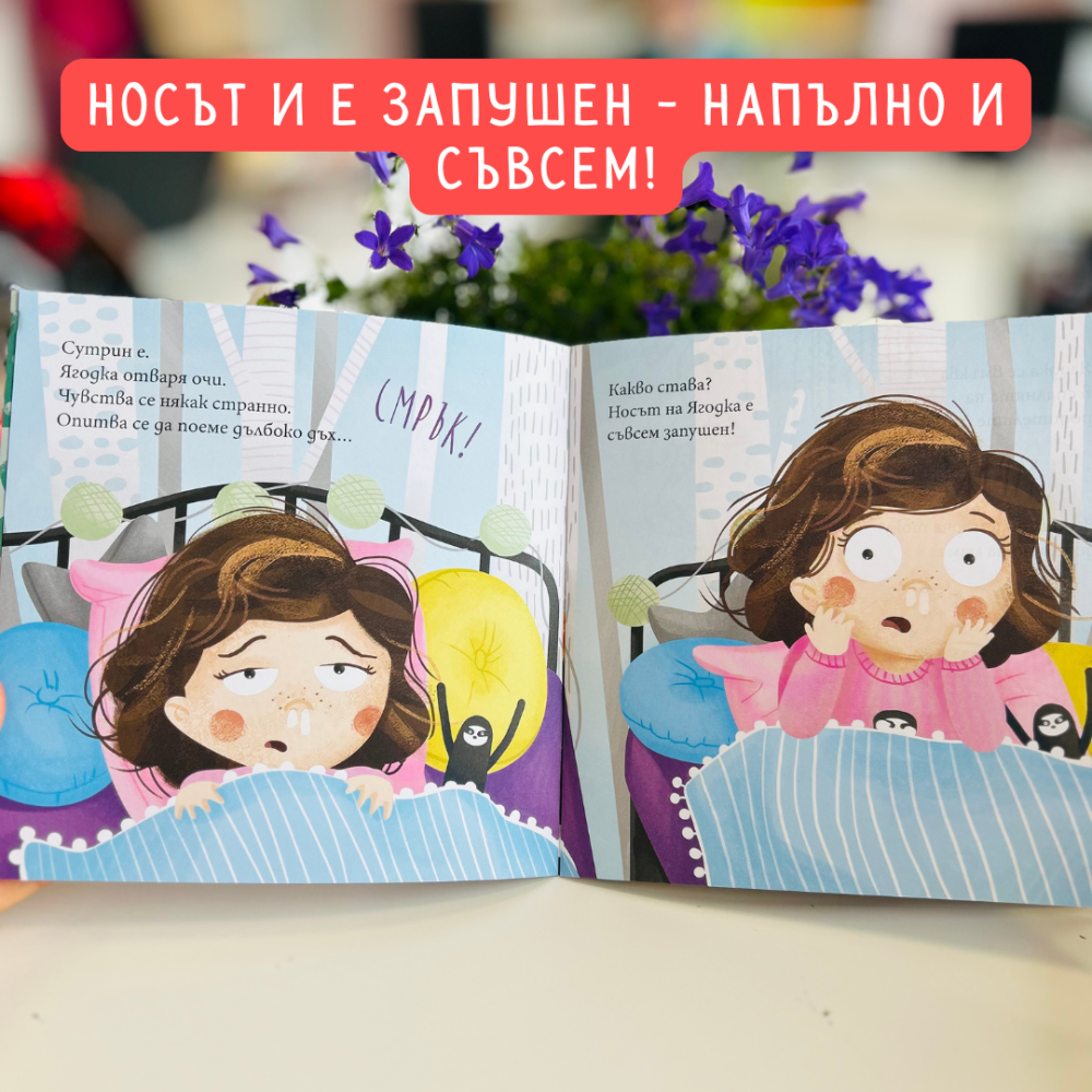 „Ягодка Петрова има сополи“ е книжка, която нежно въвежда децата в една от най-често срещаните ситуации – боледуването.