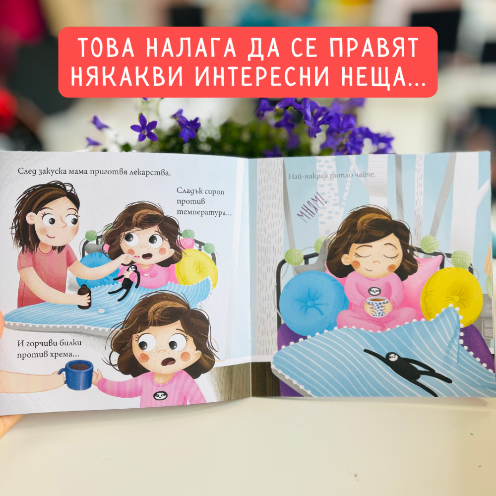 Мама обаче има идеи – чай, приказки и гушкане! Така болестта не изглежда чак толкова страшна.